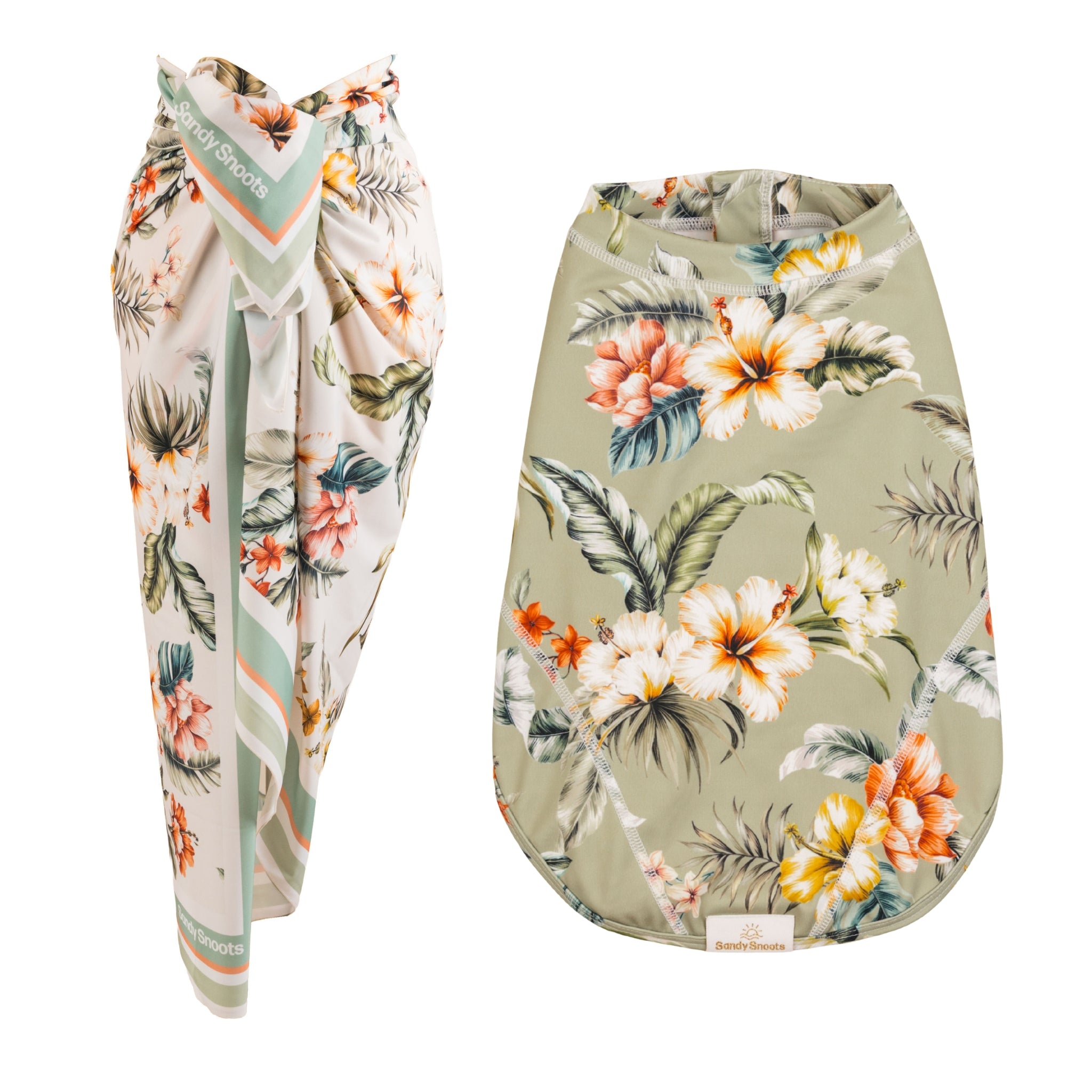 Our Aloha Allure Sarong and Rashie Bundle gives you everything you need to twin with your bestie. Featuring 1 x Aloha Allure Women’s Sarong and 1 x Aloha Allure Dog Rashie (both in your choice of size), this bundle is the ultimate summer vibe for stylish dog mums and their sandy side kicks!